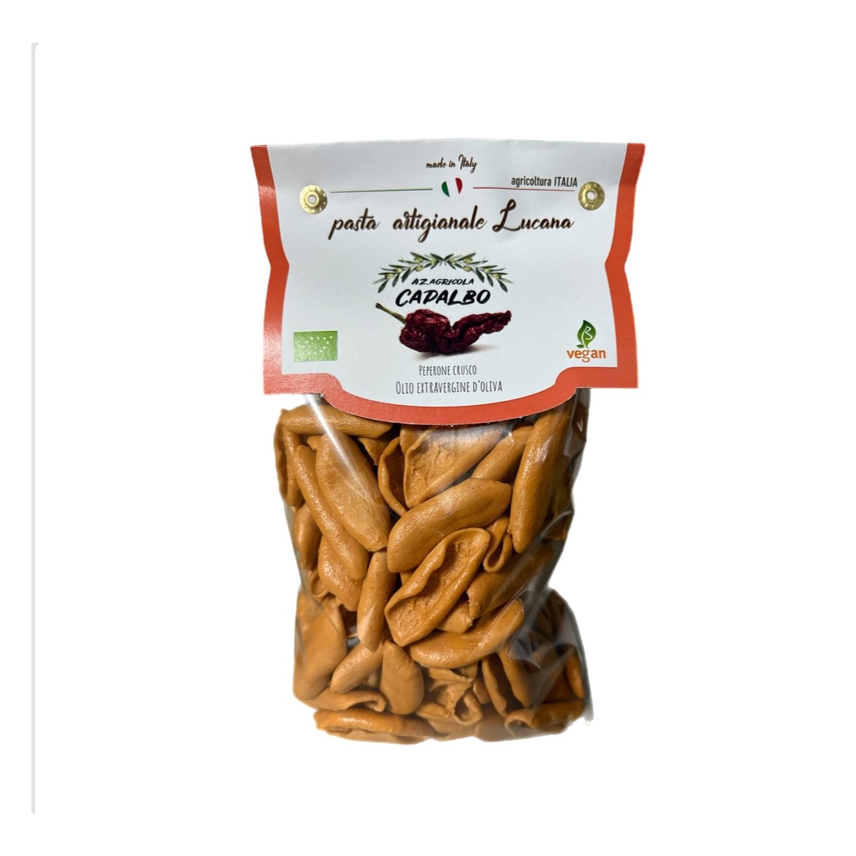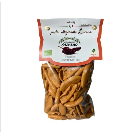 La nostra Pasta Secca Bio viene realizzata con semola di grano duro da agricoltura Biologica 100% e Peperoni Cruschi in polvere Bio .